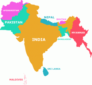 The countries which make up South Asia are Afghanistan, Bangladesh, Bhutan, India, Maldives, Pakistan, Nepal and Sri Lanka. Sometimes Myanmar (Burma) is also included. They are linked by the South Asian Association for Regional Co-operation.